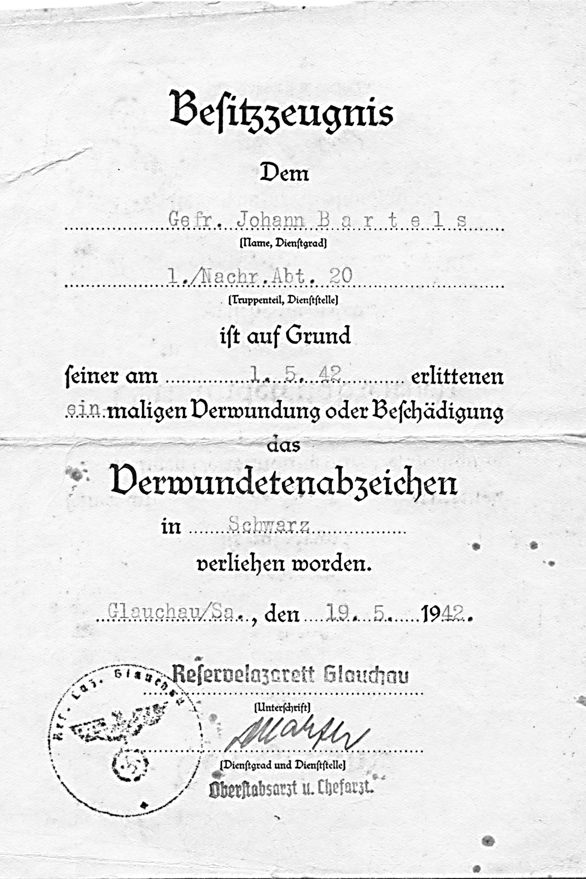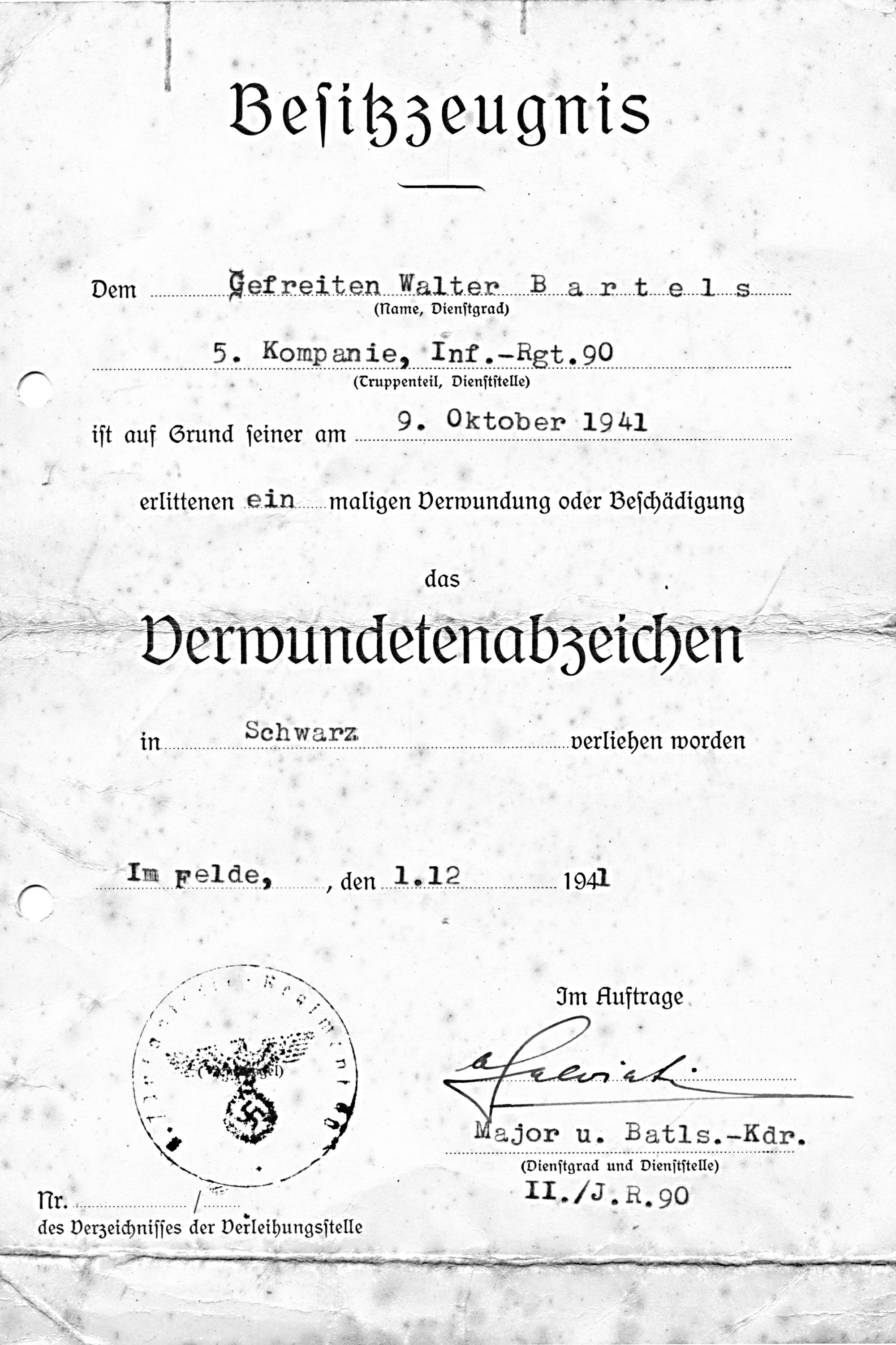 | 01.12.1941 | Verwundetenabzeichen in Schwarz |