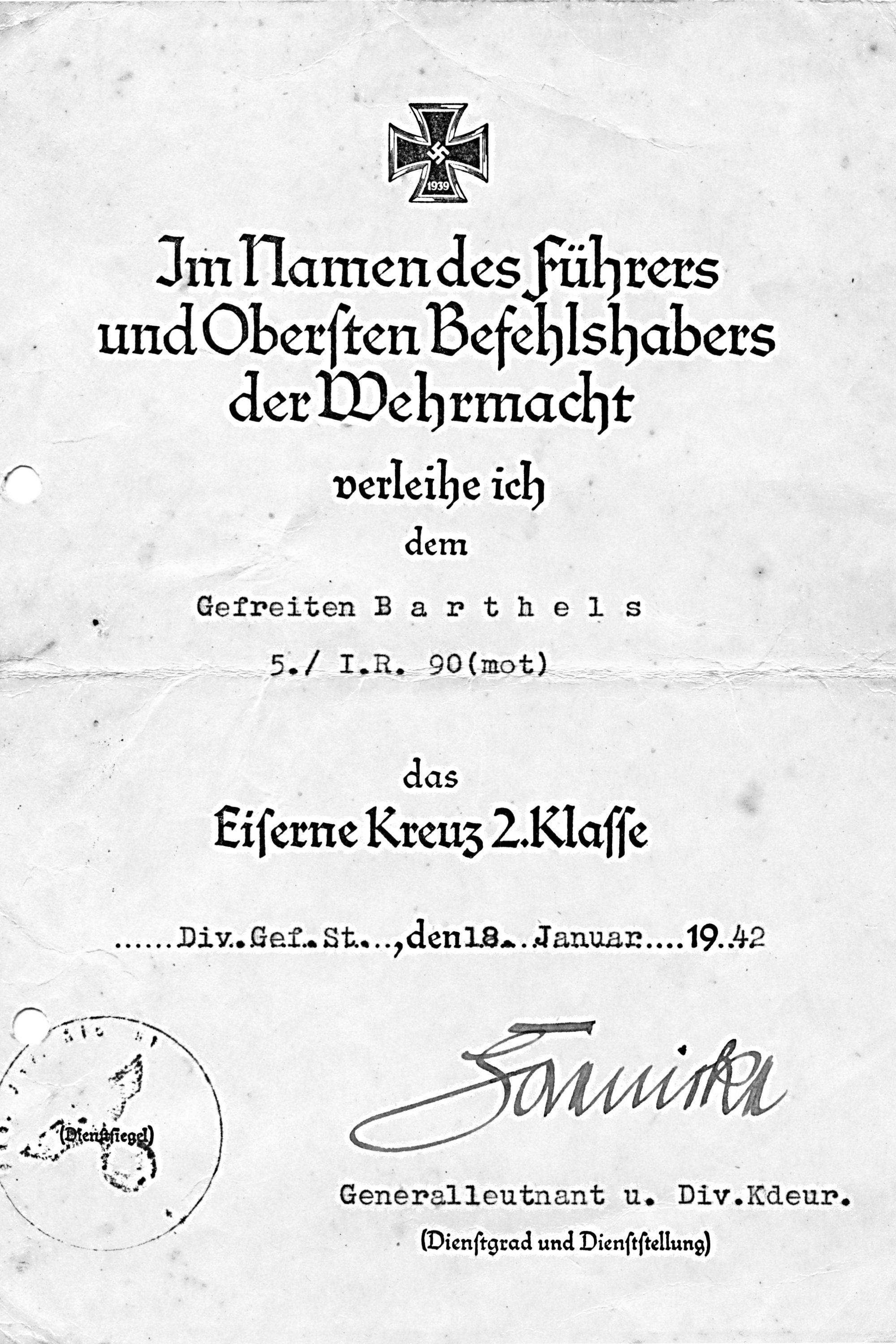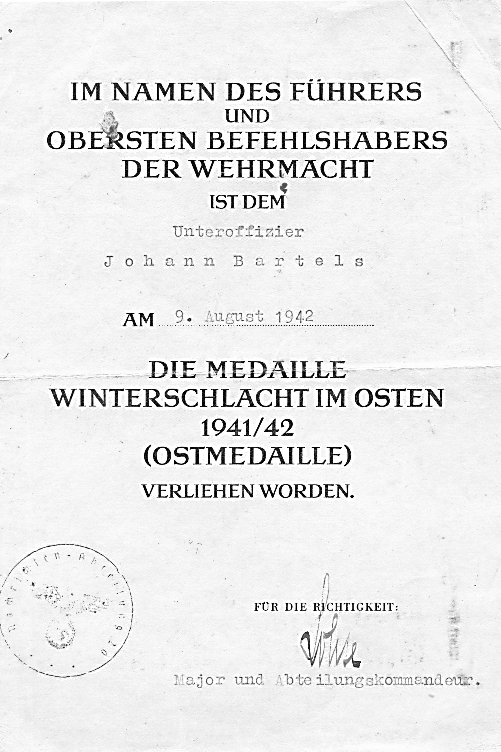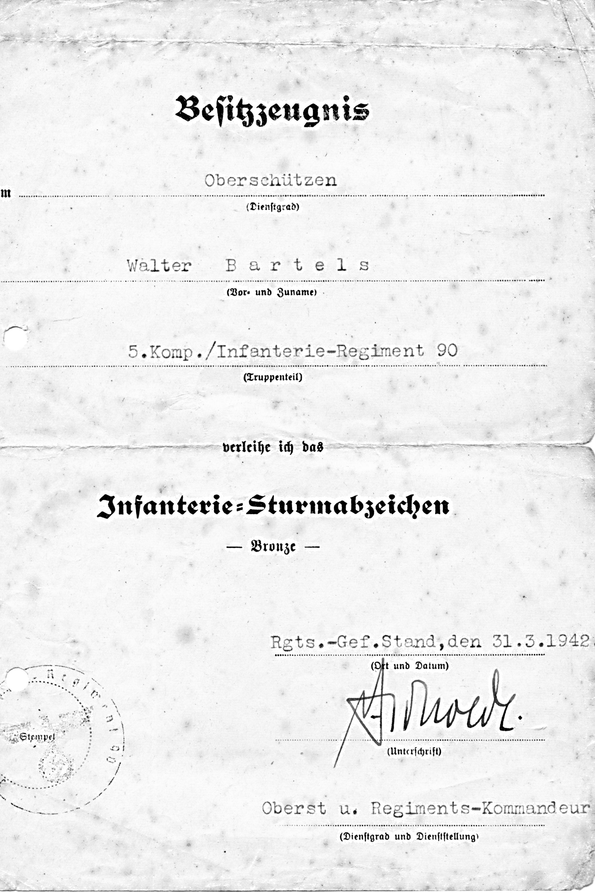| 31.03.1942 | Infanterie Sturmabzeichen in Bronze |