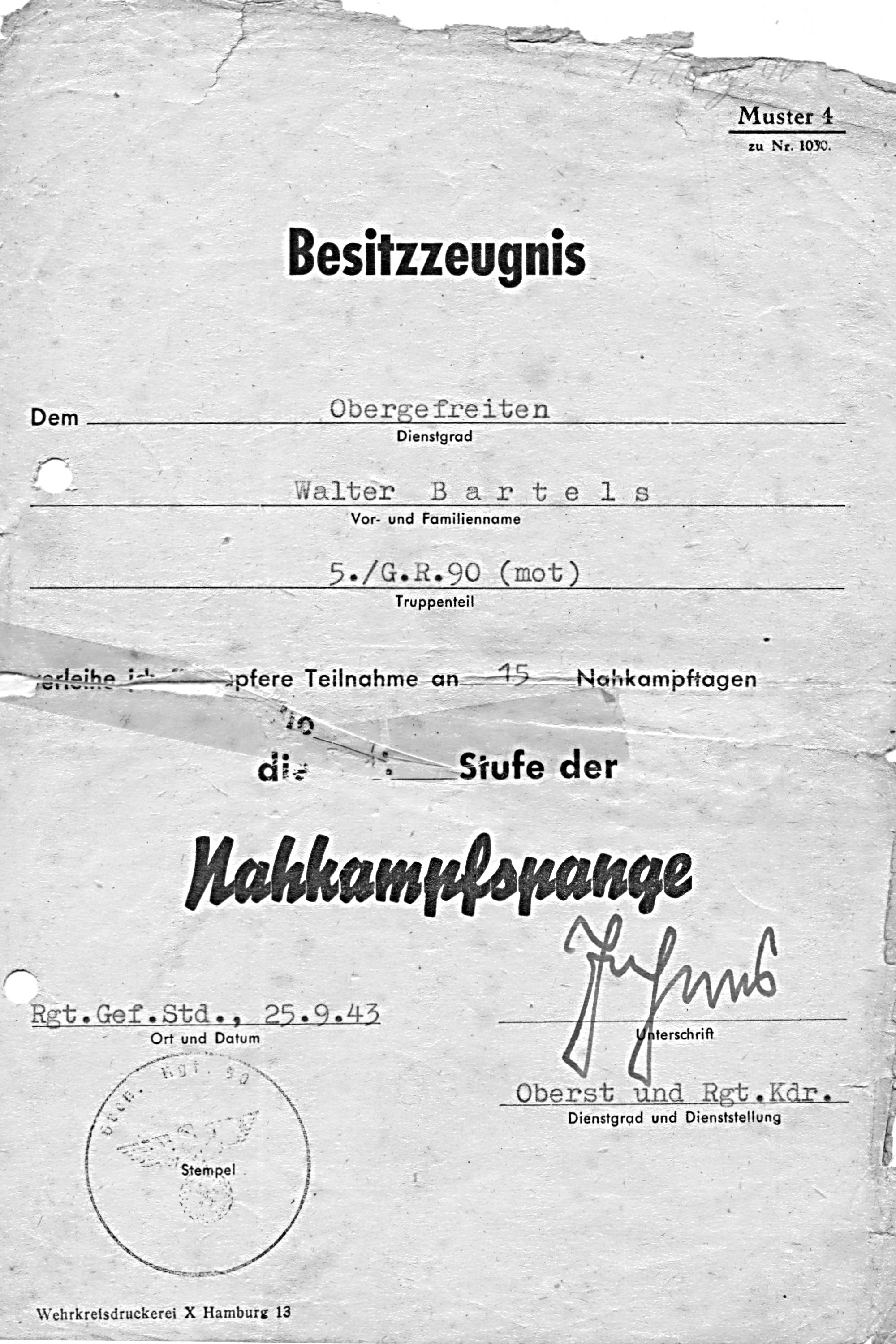 | 25.09.1943 | Nahkampfspange in Bronze |