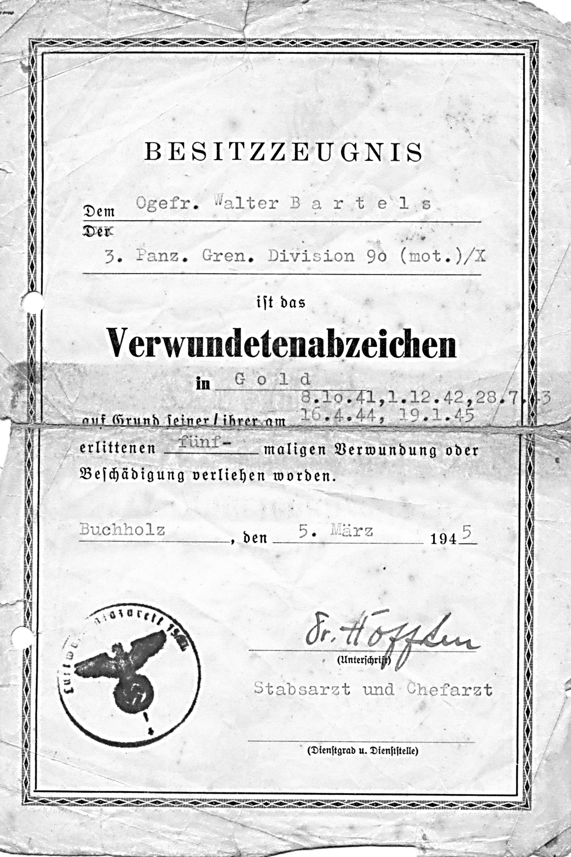 | 05.03.1945 | Verwundetenabzeichen in Gold |